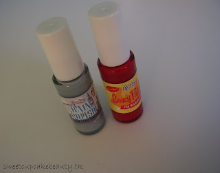 Ik wil jullie voorstellen aan Rain Polish "For City Nails", en aan Saucy Polish "For Naughty Nails". Ik vind Saucy Polish harstikke leuk, maar ik ben meestal niet in voor rode nagellak! Toch ga ik hem voor jullie testen natuurlijk, want sommigen houden juist van rood. Het is een beetje een donkere kleur rood. Niet knal, maar ook niet superdonker. Heel mooi voor speciale gelegenheden! Rain Polish is daar in tegen een mooie grijs-blauwe kleur. Niet heel erg 'zomers', maar wel mooi. Ik dacht eerst dat het een mooie lichtblauwe kleur was (zag ik op de site), maar dat is het dus niet. Er zit namelijk een grijze gloed in. Ik vind hemzelf prachtig. Maar ik denk dat het echt een kleur is waarvan iedereen houdt.